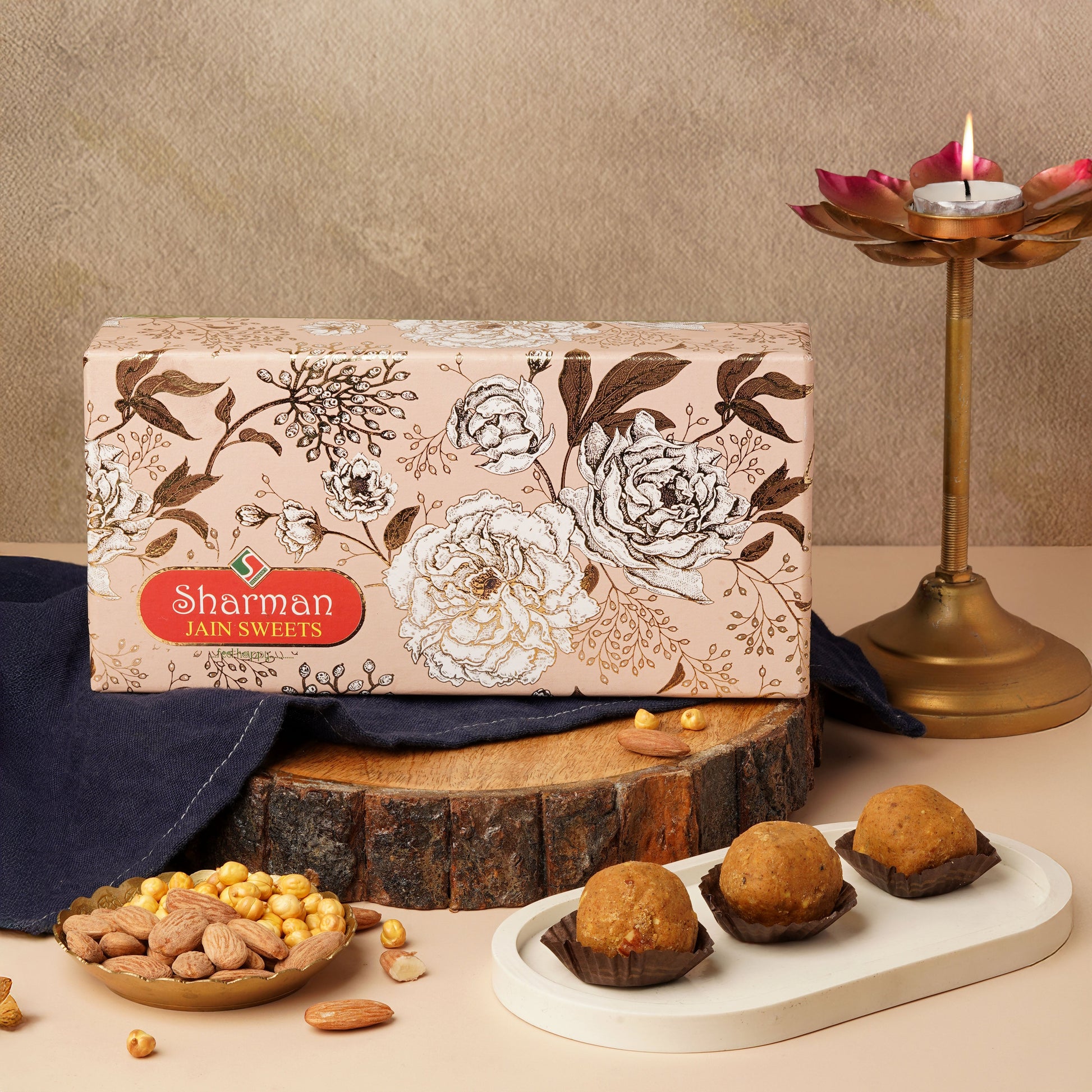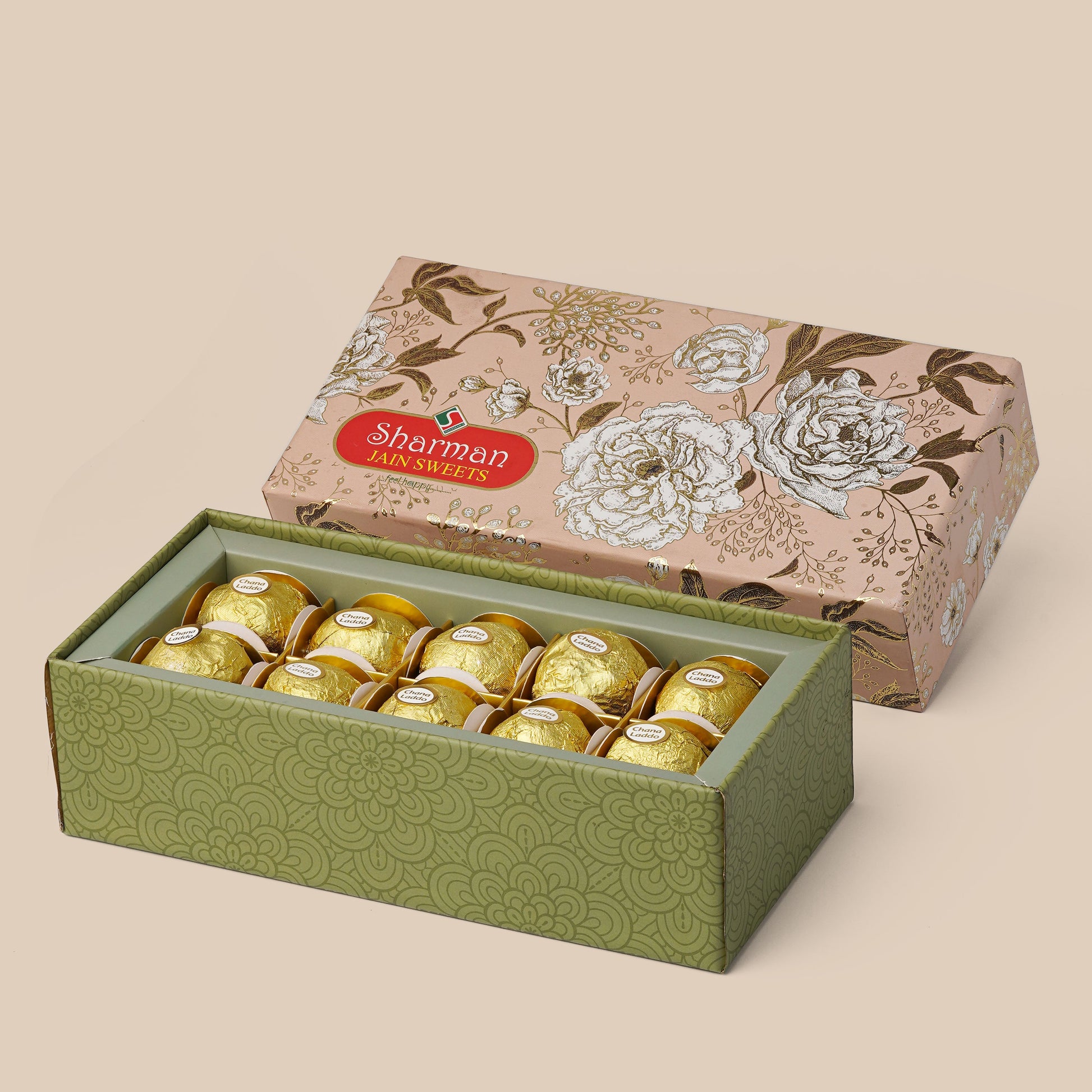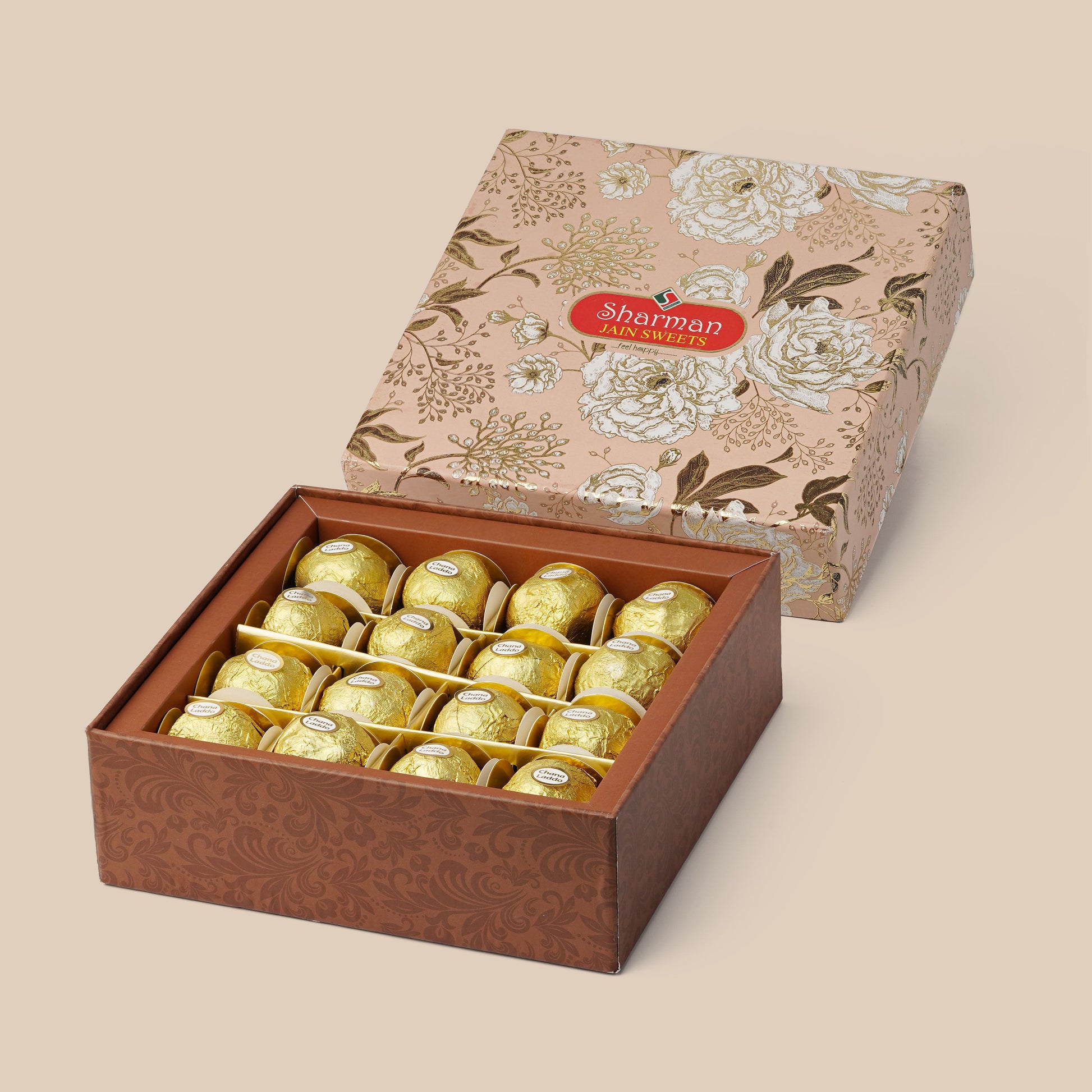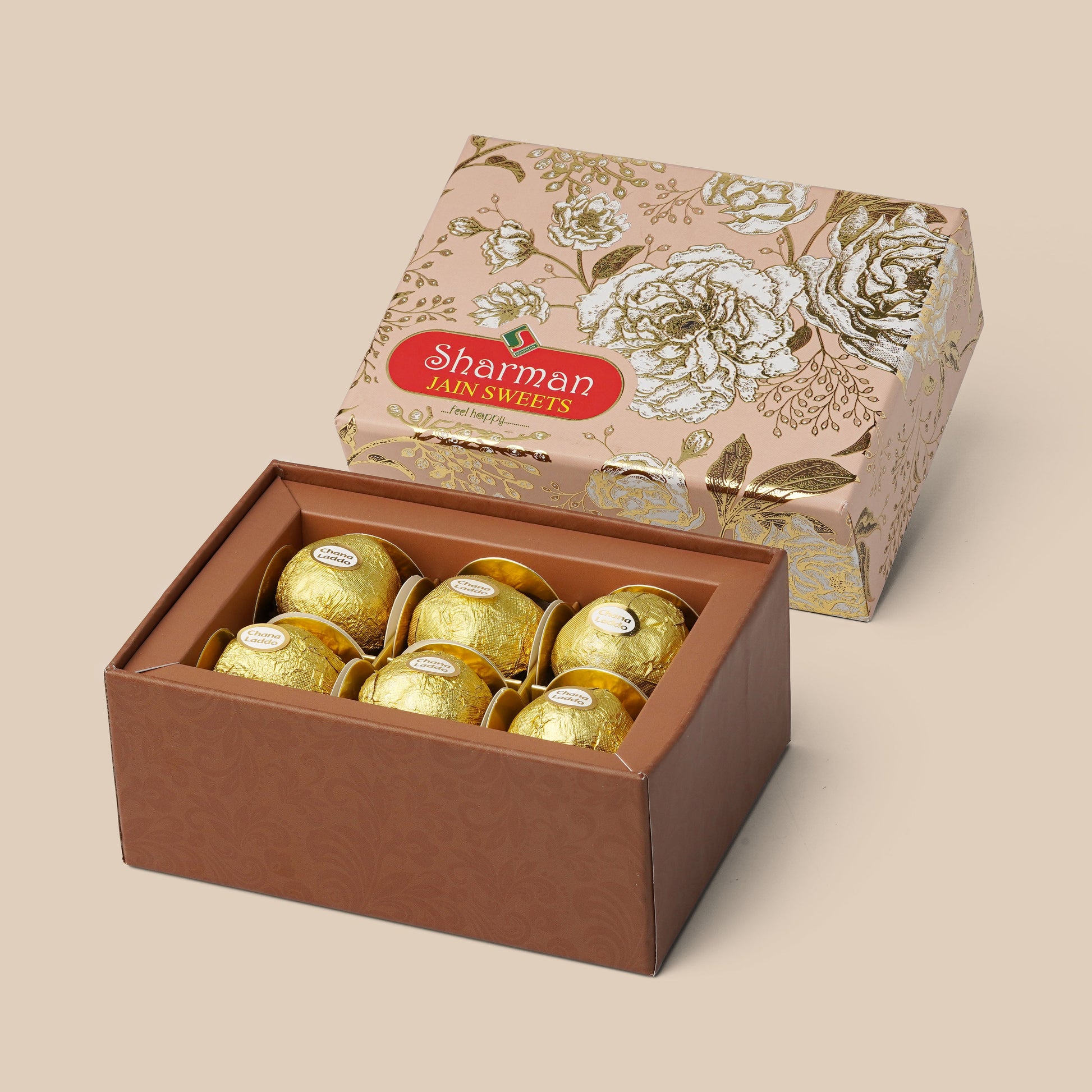 Sharman Jain Sweets presents its signature Chana Ladoo, crafted in pure desi ghee and delicately blended with premium almond nuts. Elegantly packed in a fancy box, these ladoos are an ideal choice for gifting or enjoying a truly premium sweet experience.