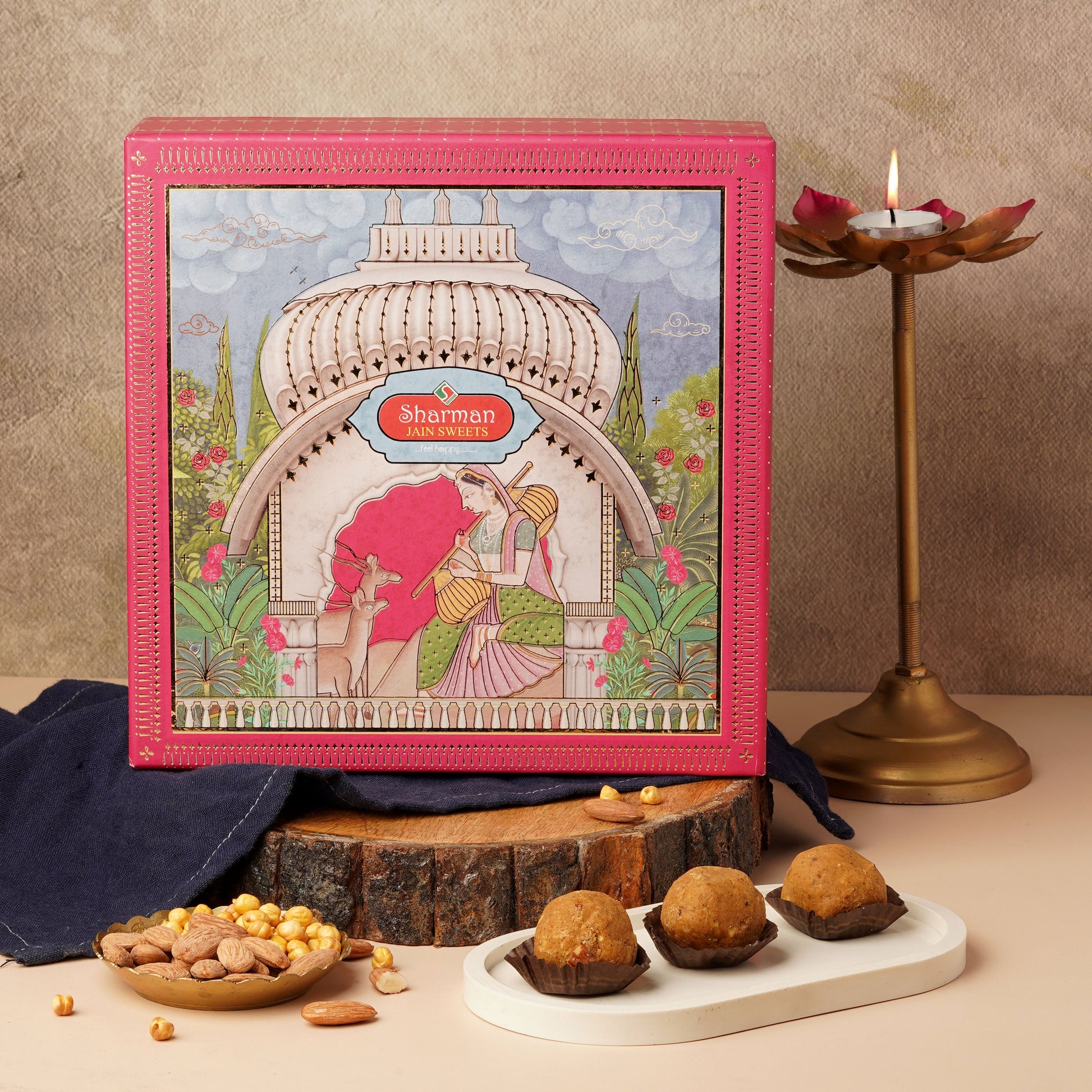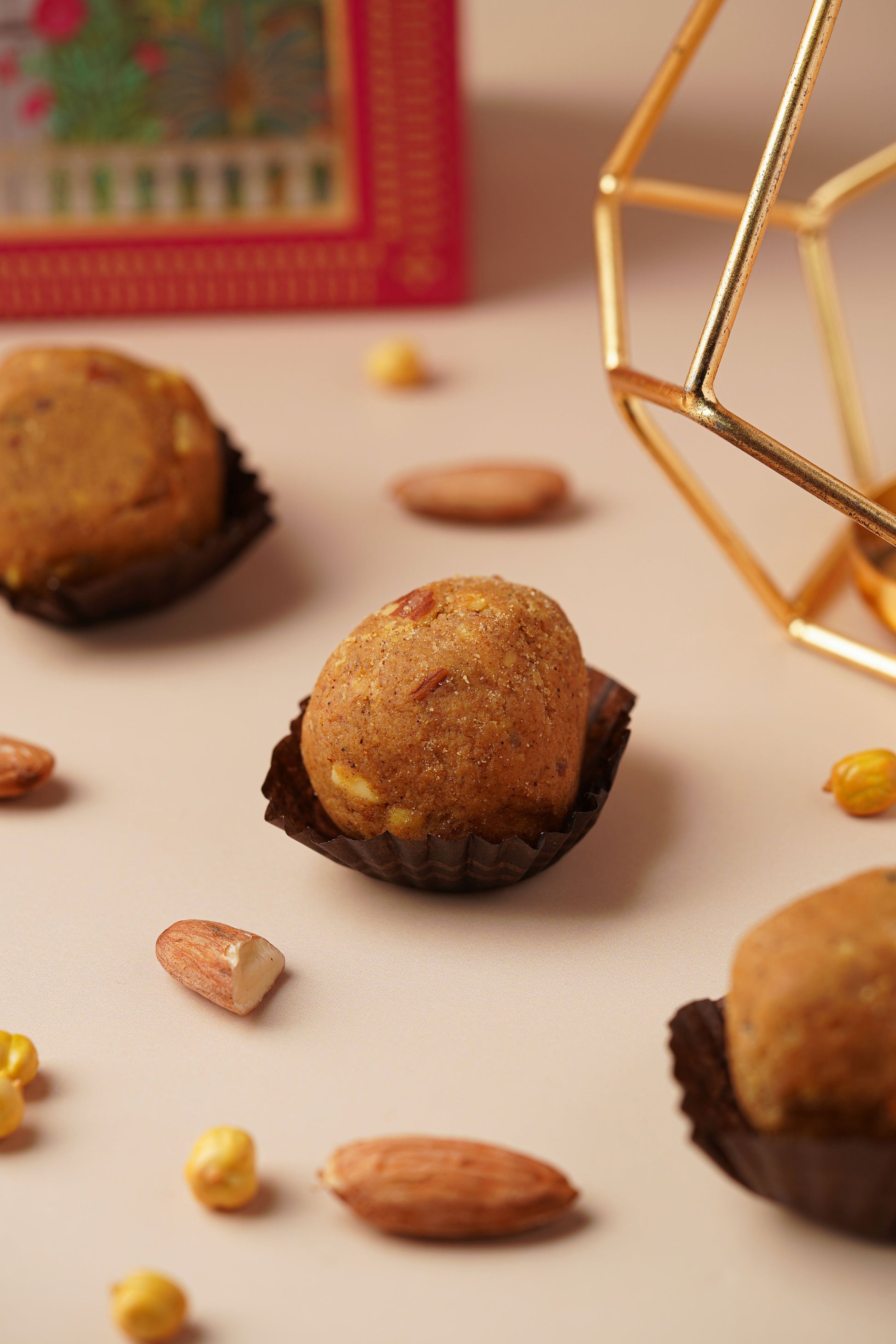 Sharman Jain Sweets presents its signature Chana Ladoo, crafted in pure desi ghee and delicately blended with premium almond nuts. Elegantly packed in a fancy box, these ladoos are an ideal choice for gifting or enjoying a truly premium sweet experience.
