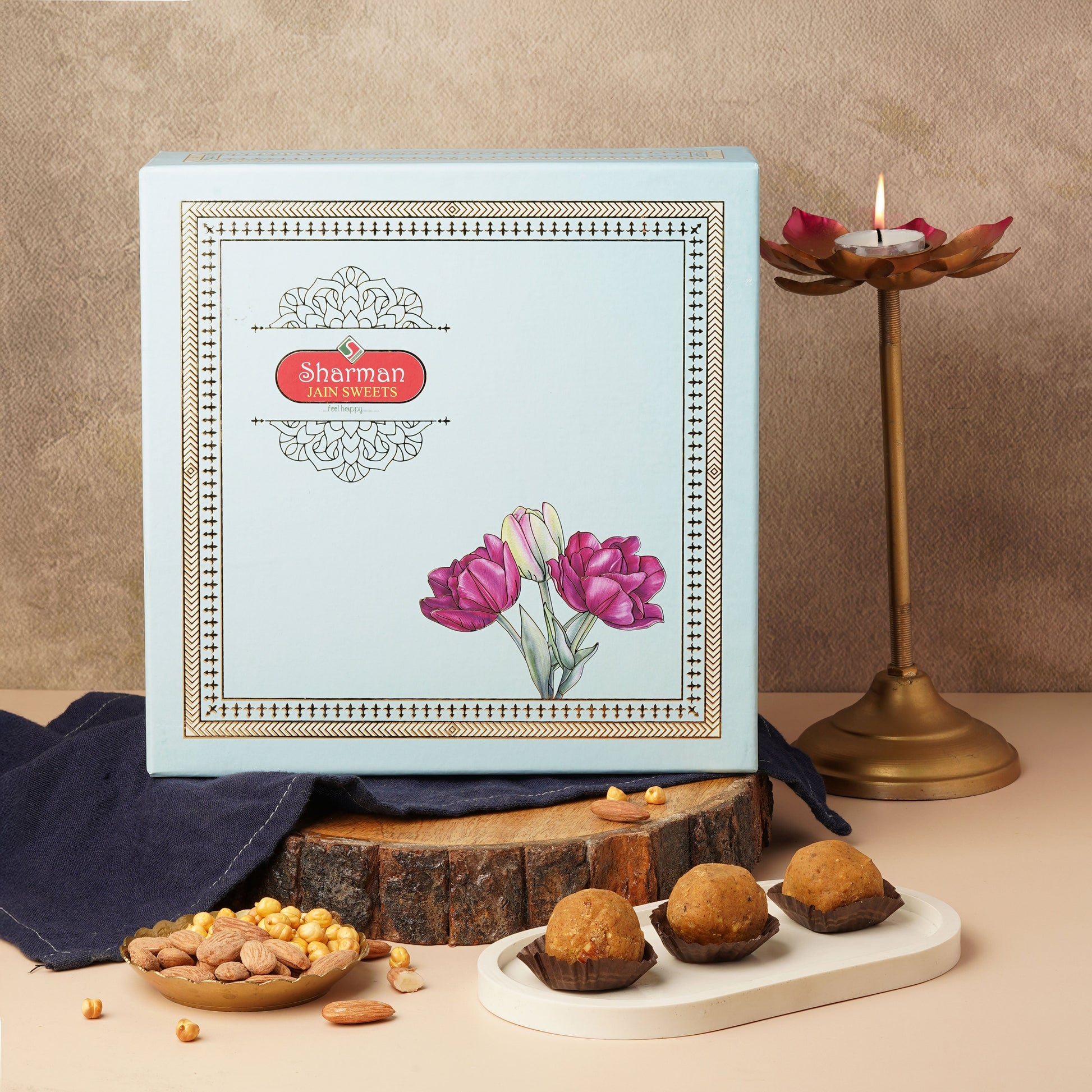 Sharman Jain Sweets presents its signature Chana Ladoo, crafted in pure desi ghee and delicately blended with premium almond nuts. Elegantly packed in a fancy box, these ladoos are an ideal choice for gifting or enjoying a truly premium sweet experience.