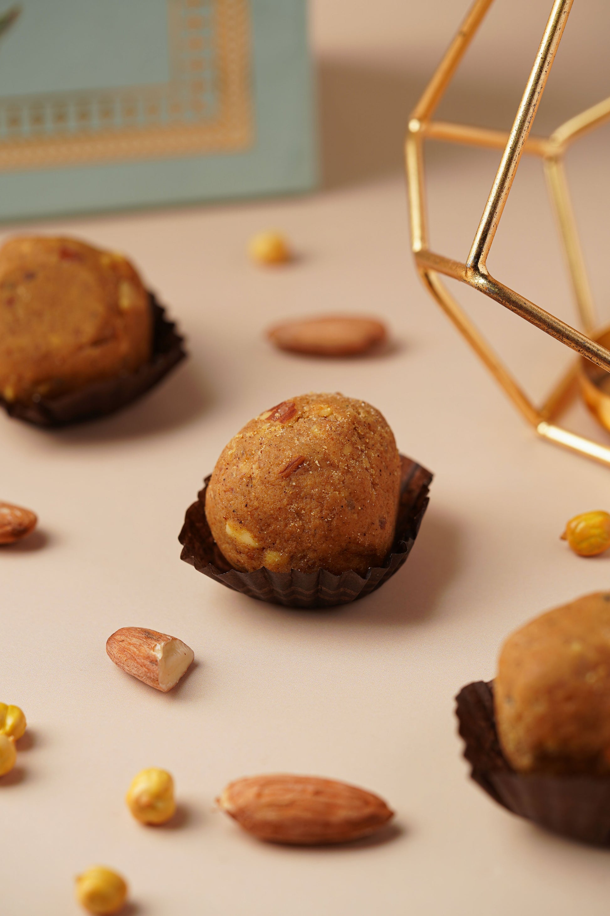 Sharman Jain Sweets presents its signature Chana Ladoo, crafted in pure desi ghee and delicately blended with premium almond nuts. Elegantly packed in a fancy box, these ladoos are an ideal choice for gifting or enjoying a truly premium sweet experience.