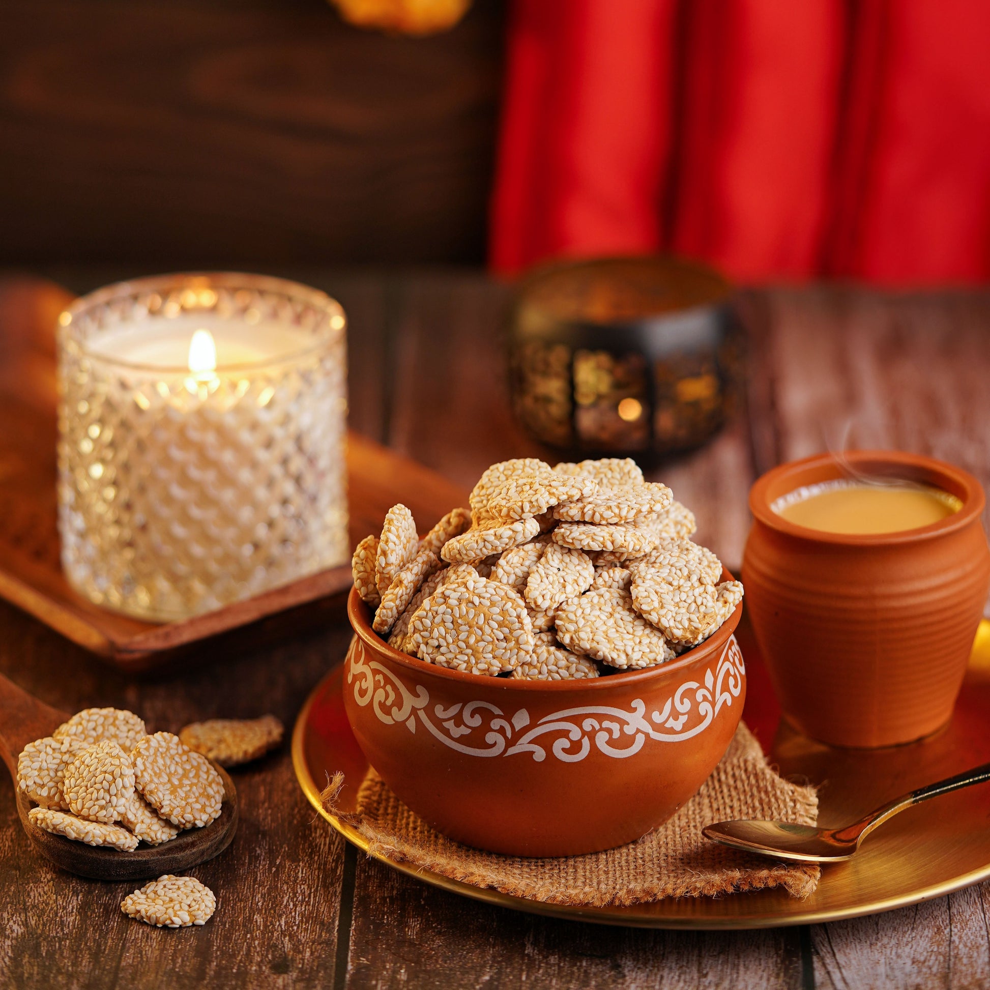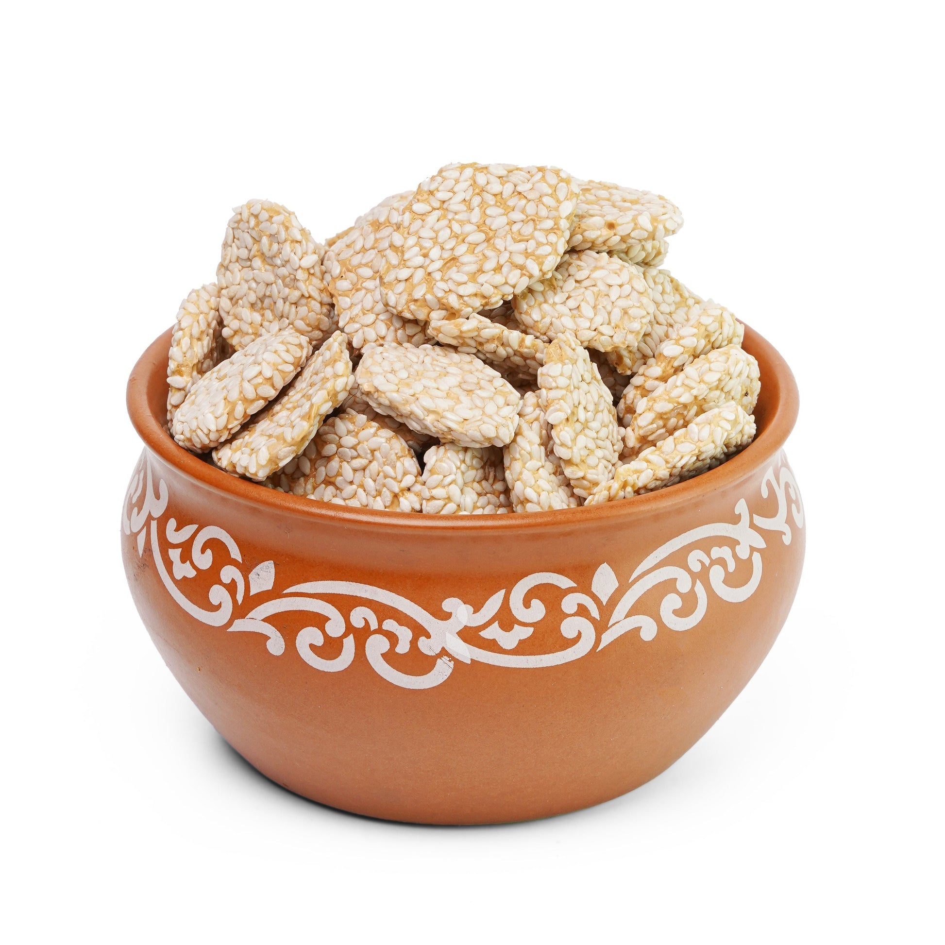 Gur Chapta Rewari is a traditional Indian sweet made from jaggery (gur), sesame seeds, and sometimes roasted peanuts. The mixture is cooked into a sticky, caramelized syrup and then shaped into bite-sized pieces. This crunchy and sweet treat is popular during winter and festive seasons for its warmth and energy.